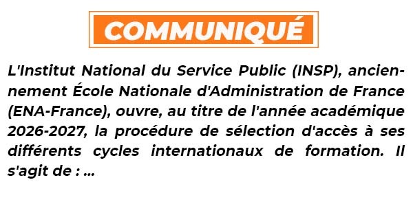 L'Institut National du Service Public (INSP), anciennement École Nationale d'Administration de France (ENA-France), ouvre, au titre de l'ann